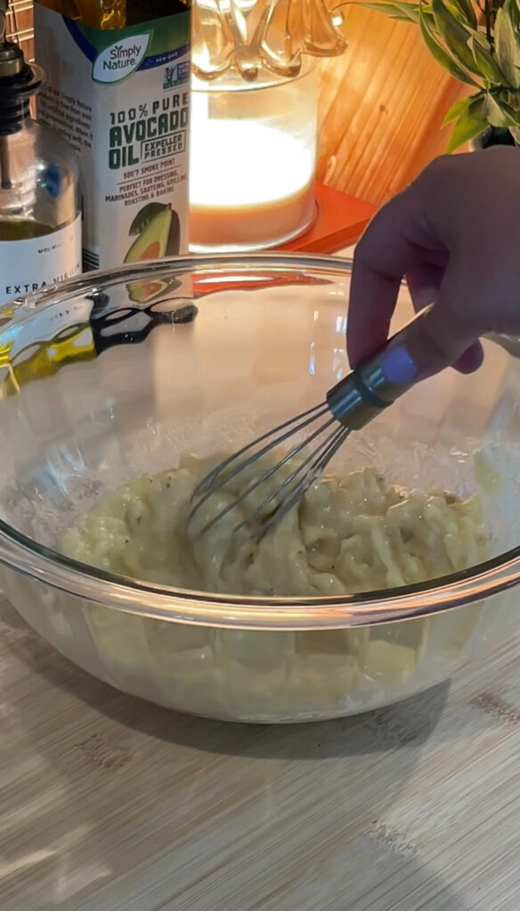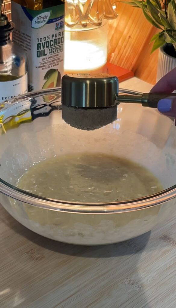 • Start by mashing your ripe bananas in a mixing bowl until mostly smooth.