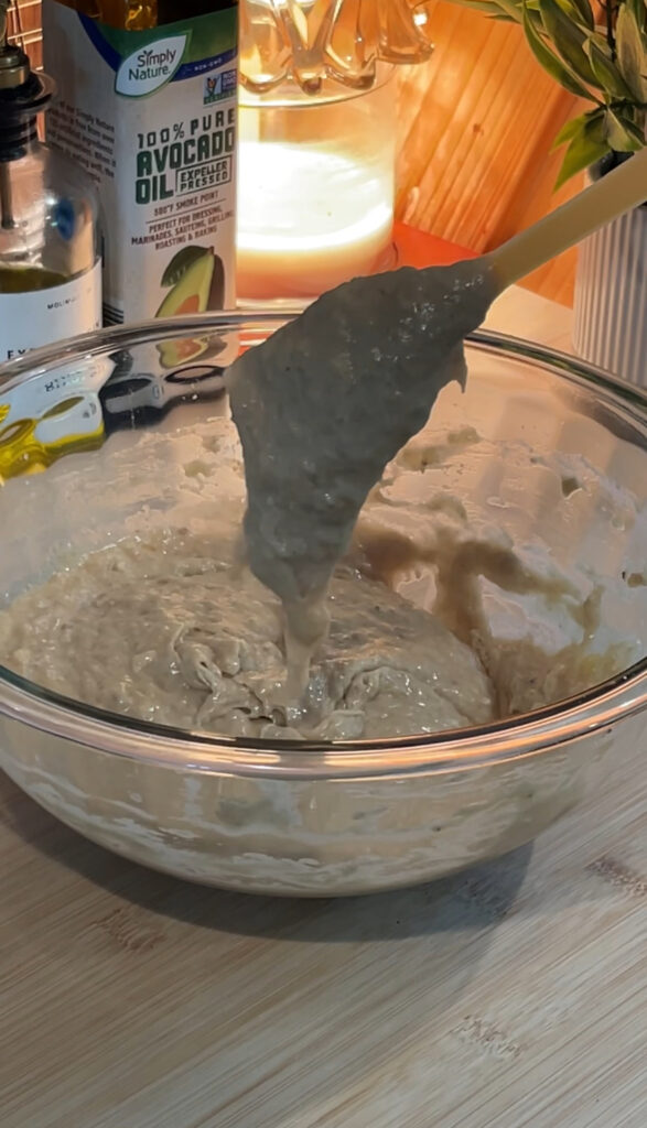 • Then gently fold the dry ingredients into the wet mixture just until everything comes together.