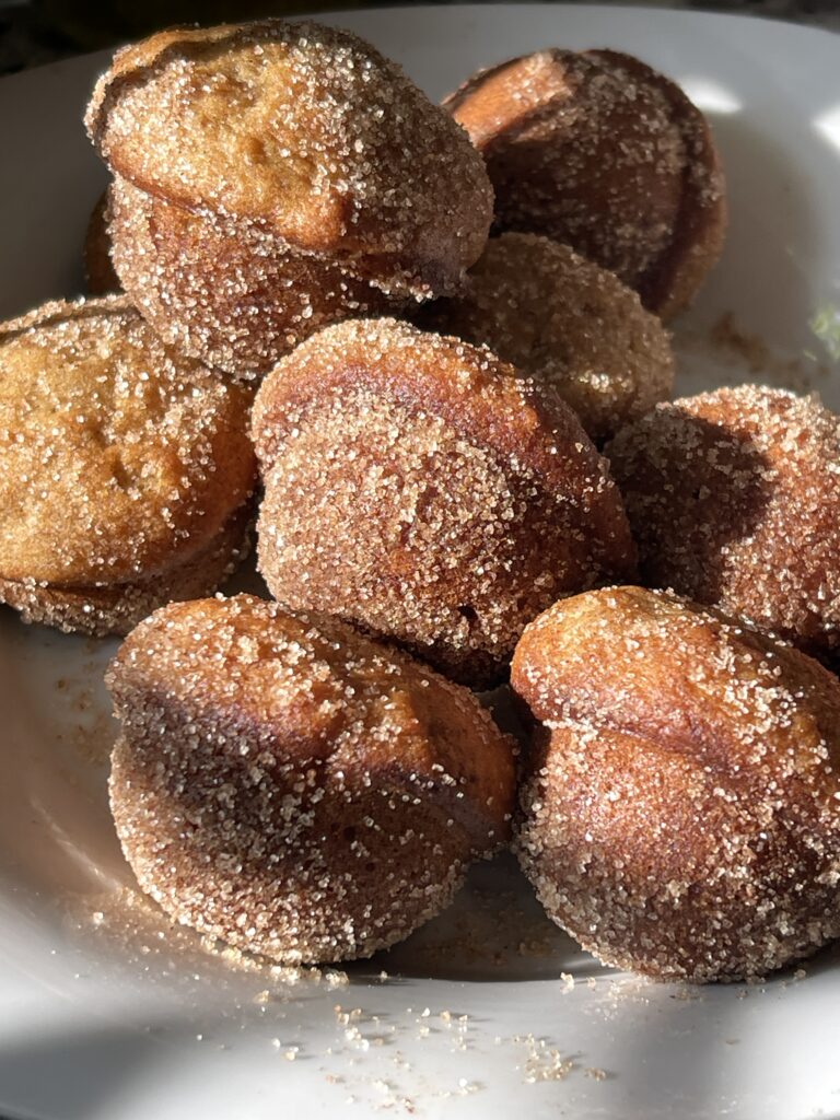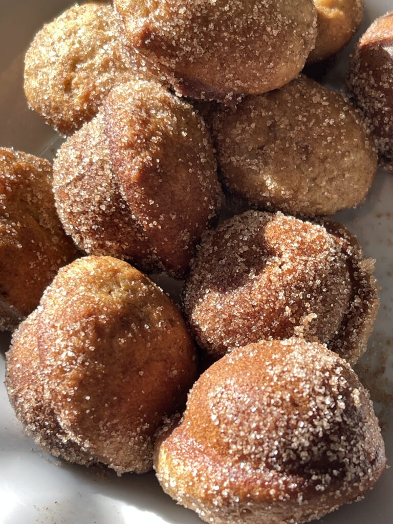 • Cinnamon: Brings that cozy warmth inside the batter and in the final cinnamon-sugar coating.