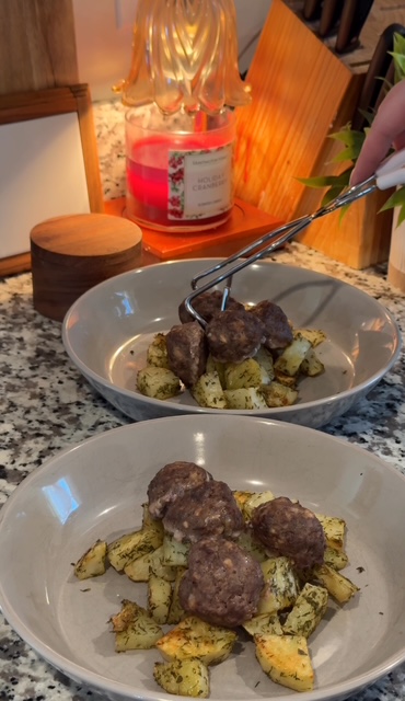 • Thyme – A warm, earthy herb that complements the roasted potatoes and meatballs.