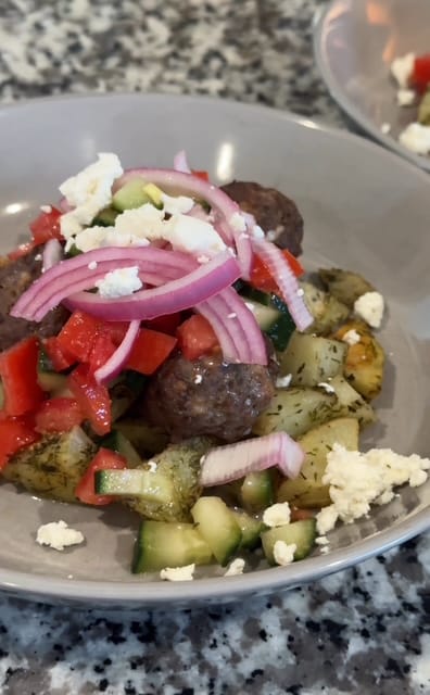 If you’re craving something cozy, flavorful, and easy enough for a weeknight dinner, these Greek Inspired Meatballs & Potatoes are about to become a new favorite. Juicy, herb-packed meatballs are roasted alongside tender, golden potatoes and finished with bright Mediterranean flavors like garlic, thyme, and dill. It’s the kind of simple, satisfying meal that feels a little special but comes together with minimal effort. Perfect for family dinners, meal prep, or when you want a comforting dish with bold Greek-inspired flavor.