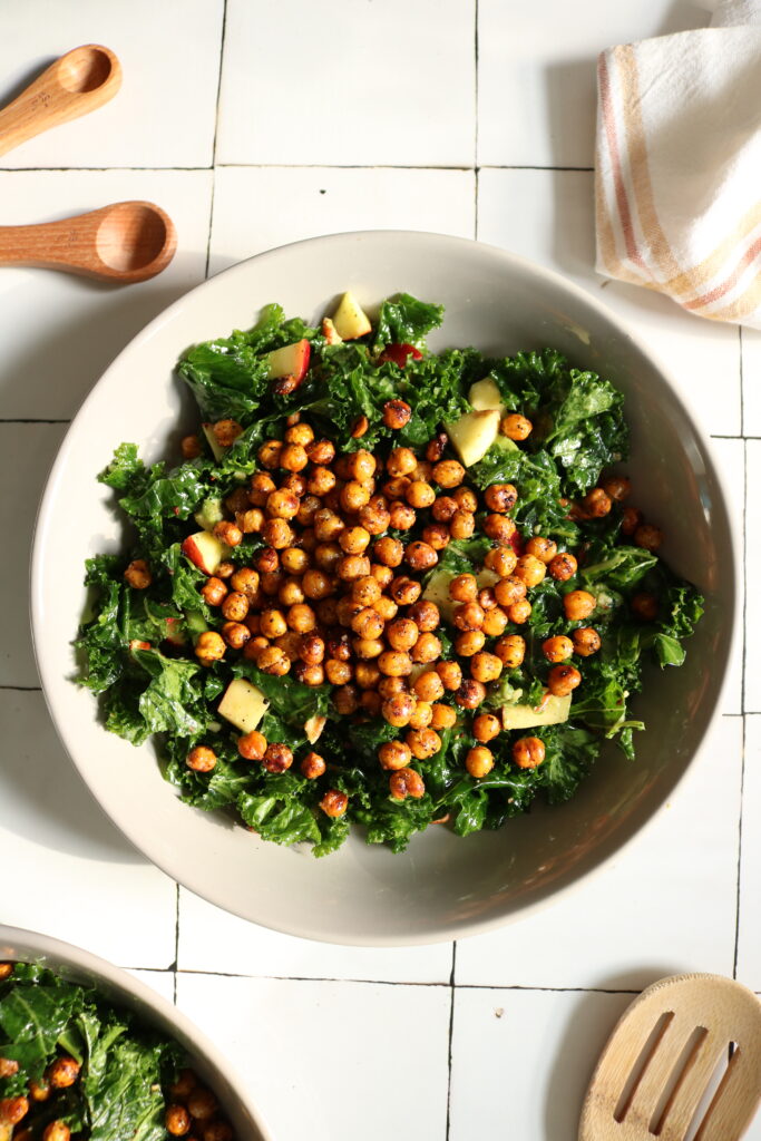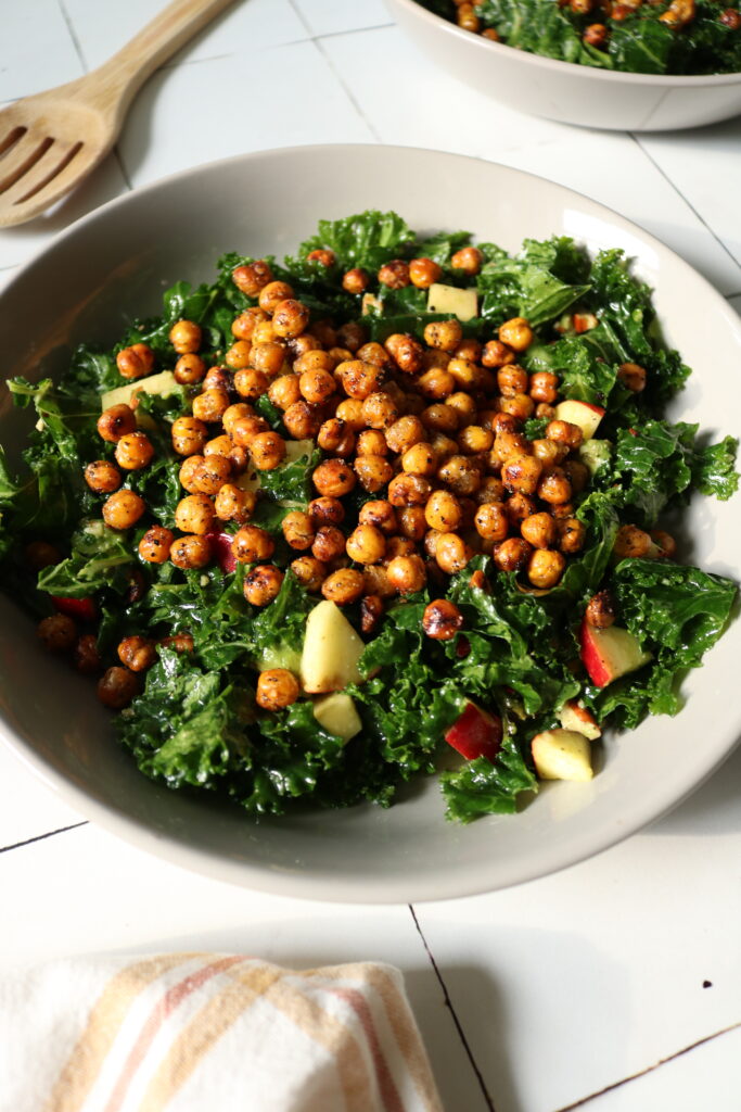 - Chickpeas – Roasted until crispy, they add protein and make this kale apple walnut salad with roasted chickpeas more filling.