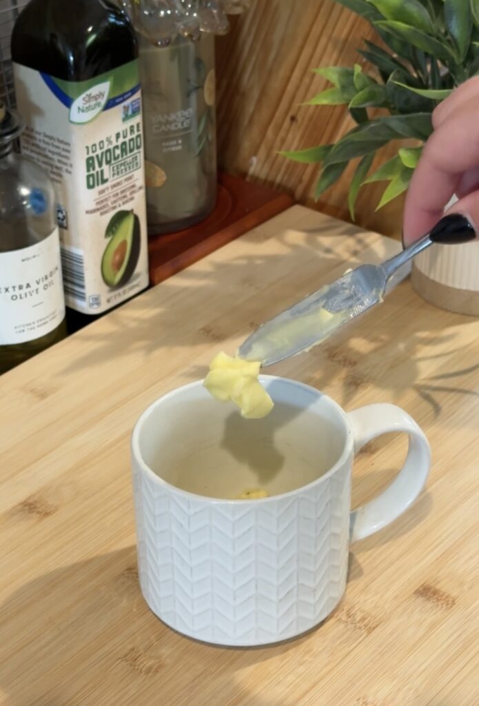 • Add 1 teaspoon of butter to the mug and microwave for 1 minute to soften the apples.