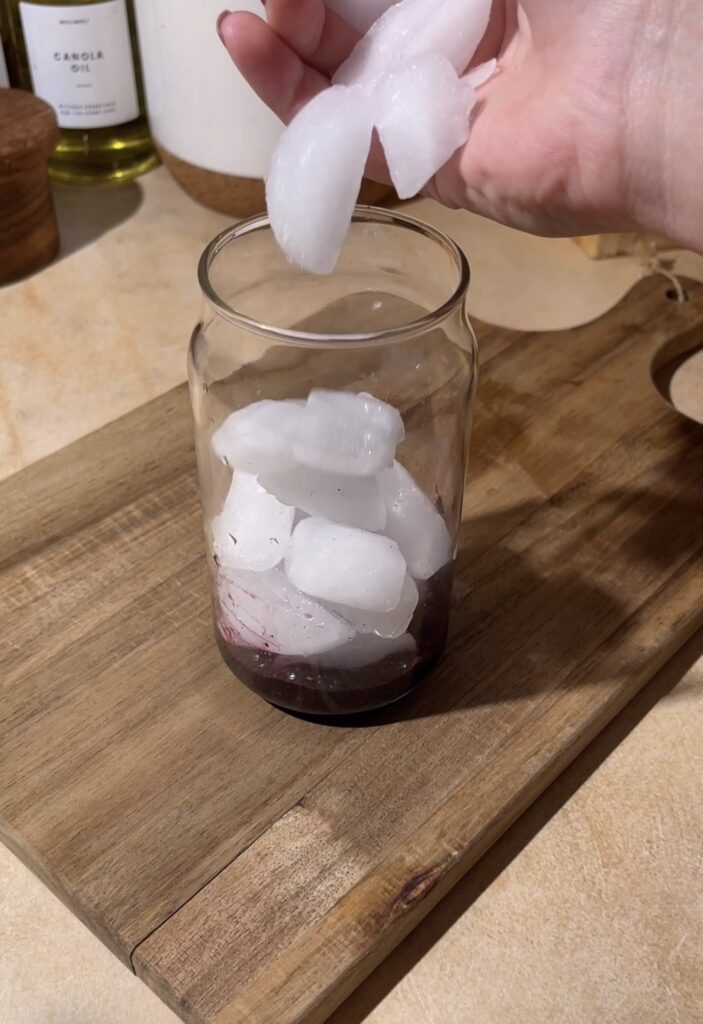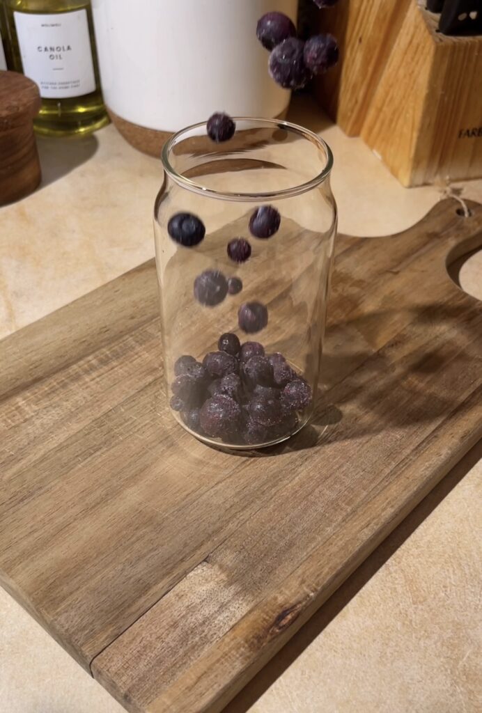 - Start by adding a generous spoonful of frozen blueberries directly into the bottom of your glass. Pop the glass into the microwave for about 30 to 45 seconds—just long enough to soften the berries and let their juices release.1/4 cup Frozen Blueberries