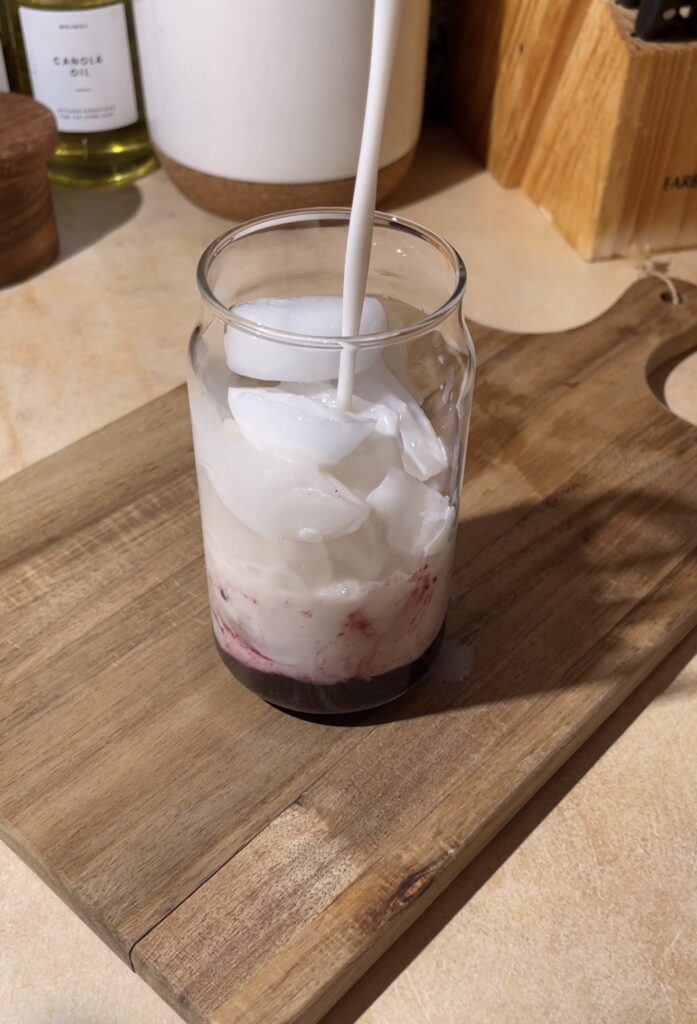 - Vanilla creamer – Adds a subtle sweetness and warmth that balances the bold matcha and tart blueberry.